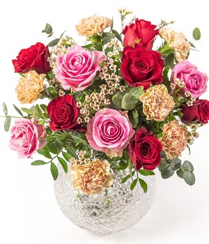 A traditional Valentine's Day bouquet filled with gorgeous red and pink roses and seasonal foliage. Perfect for anyone on a budget who still wants to spoil their loved one. Lovingly hand-prepared and delivered by a local florist.